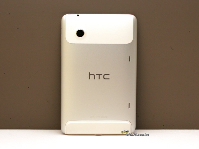 ▲HTC Flyer 背面配置一個 500 萬像素自動對焦鏡頭,不過沒有 LED 補光燈,而且那塊白色的保護蓋很容易弄髒,大家可要小心愛護呀!