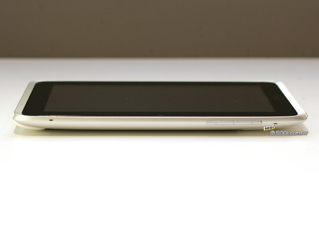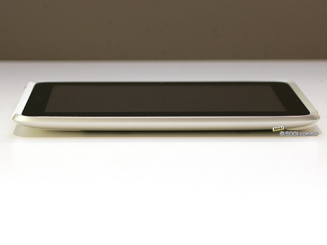 ▲HTC Flyer 機身左側沒有按鍵,不過可以從圖中看到兩個喇叭輸出孔,HTC Flyer 同樣有 Dolby Mobile 與 SRS Sound 音效技術的加持,而且輸出的聲音應該算是 HTC 有史以來最大的機種
