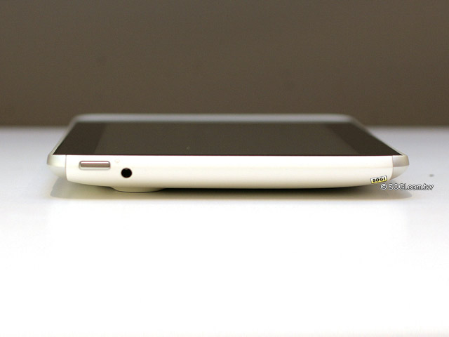 ▲HTC Flyer 機身頂部配置一個 3.5mm 標準耳機孔和電源鍵,輸出音質還不賴,至少沒有底噪。